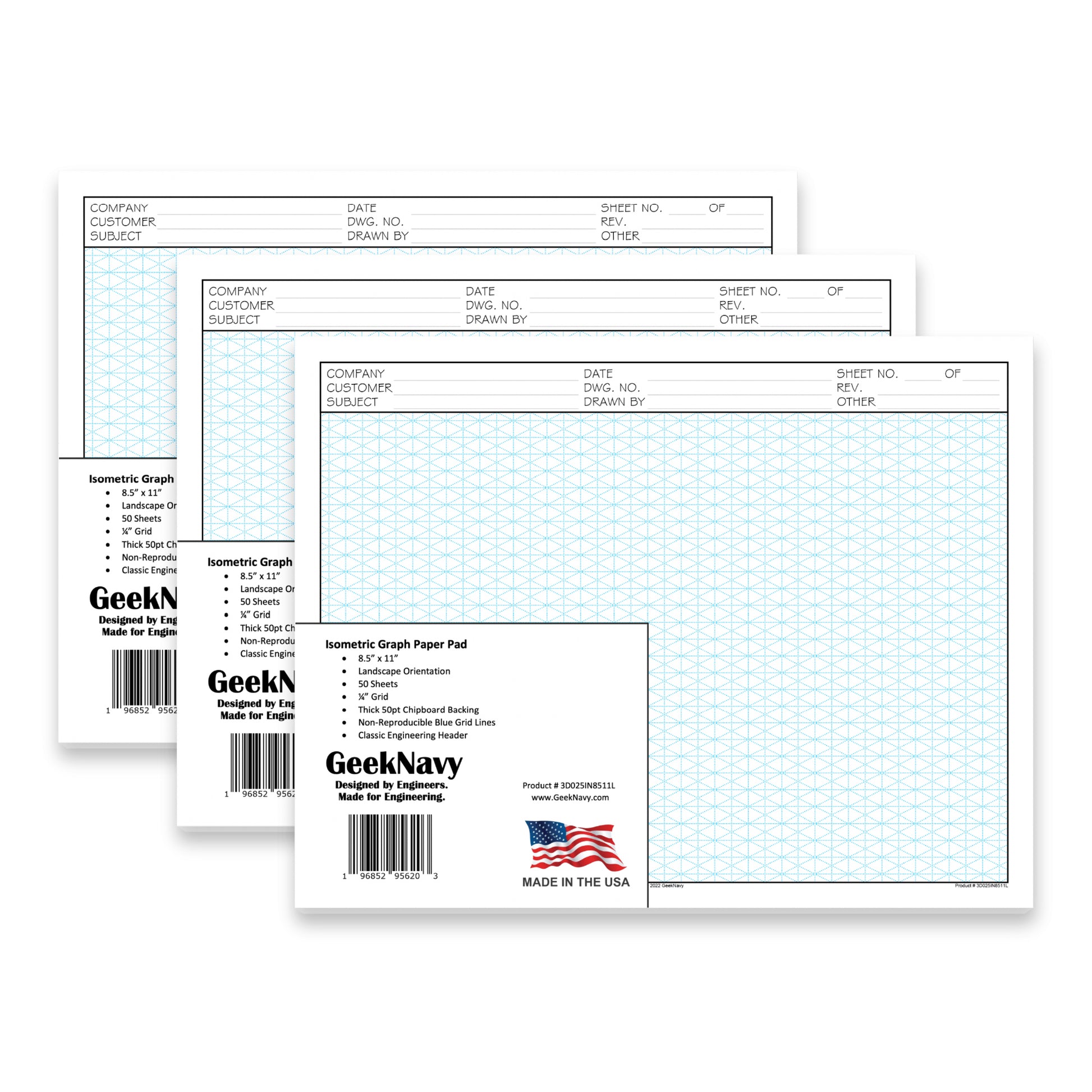 GeekNavy Isometric Grid Graph Paper Pad, 8.5″ x 11″ Landscape